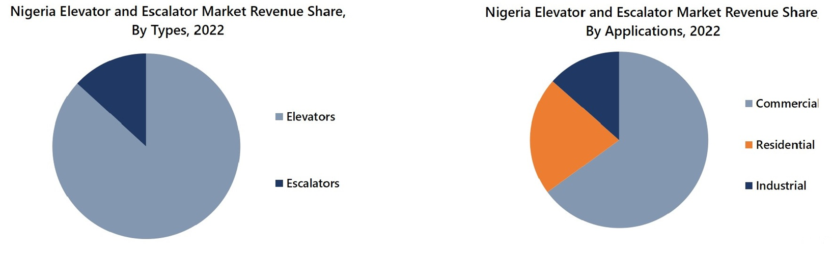 The elevator and escalator market in Nigeria was dominated by elevator during the year 2022. Elevator hold the maximum revenue and volume share in Nigeria, and it is expected that this trend would continue in the forecast period. The growth of elevators in Nigeria could be attributed to Nigerian government investment in housing and infrastructure projects worth N123.1 billion between the year 2022 and 2025 and this would further propel the market for elevators.