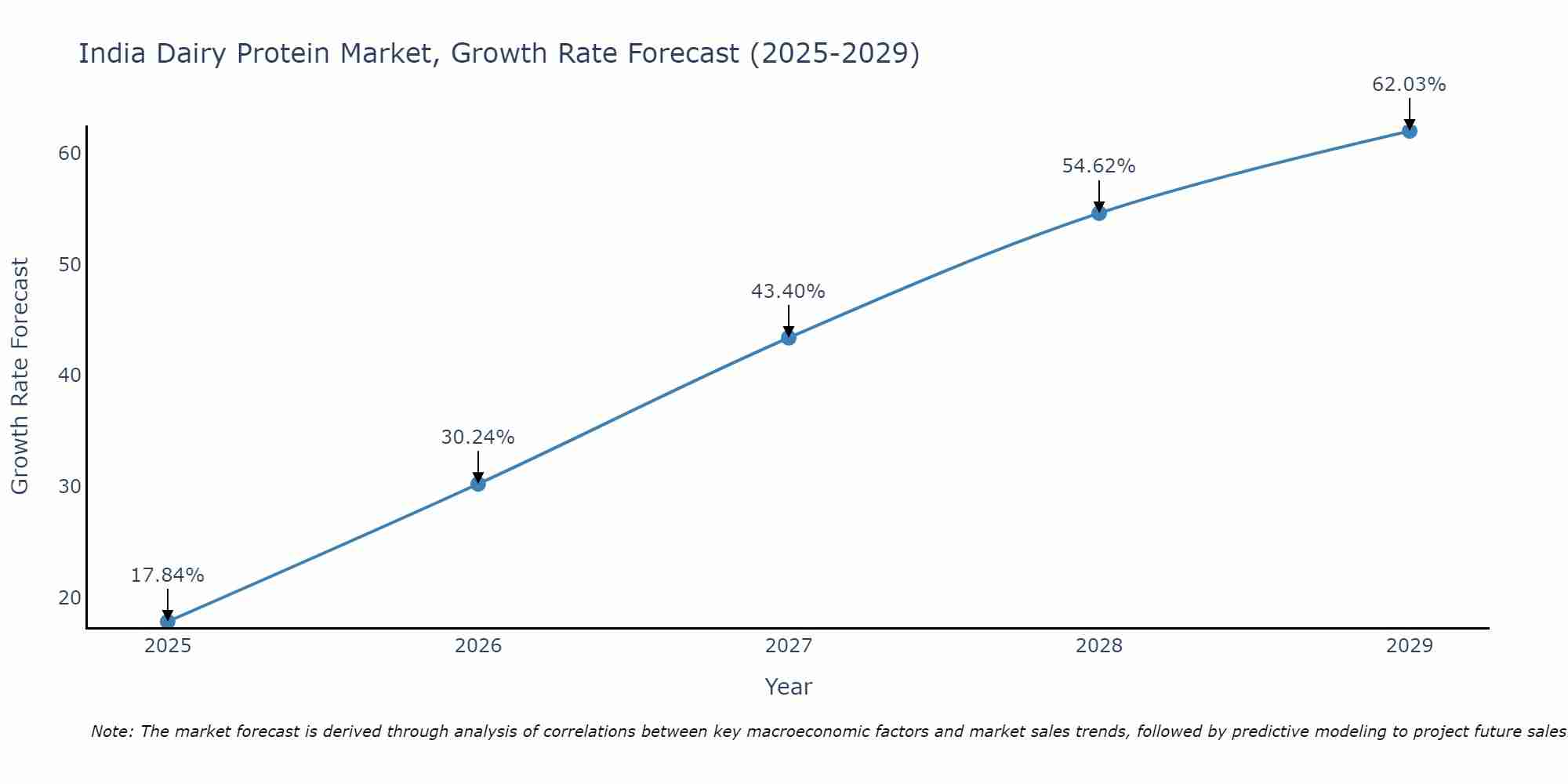 The dairy protein market in India is expected to witness significant growth over the forecast period as a result of increasing demand for nutritional, functional, and fortified food products. Rising consumer awareness regarding health benefits associated with dairy proteins has been driving the industry in India. Furthermore, surging disposable incomes and changing dietary patterns among consumers contribute to the growth of this market.
