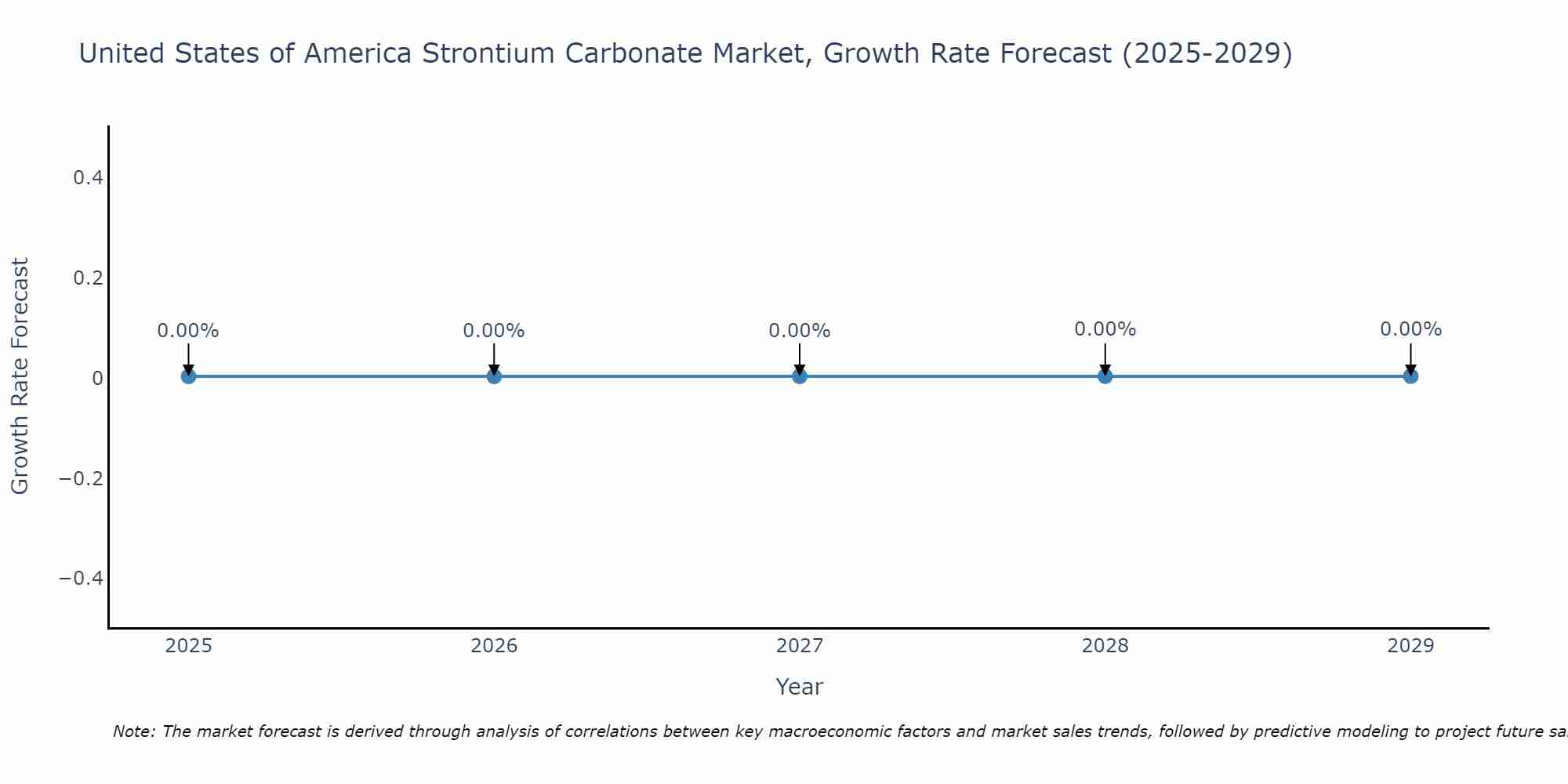 The United States of America Strontium Carbonate Market is poised for steady growth rate improvements from 2025 to 2029. Commencing at 0.00% in 2025, growth builds up to 0.00% by 2029.
