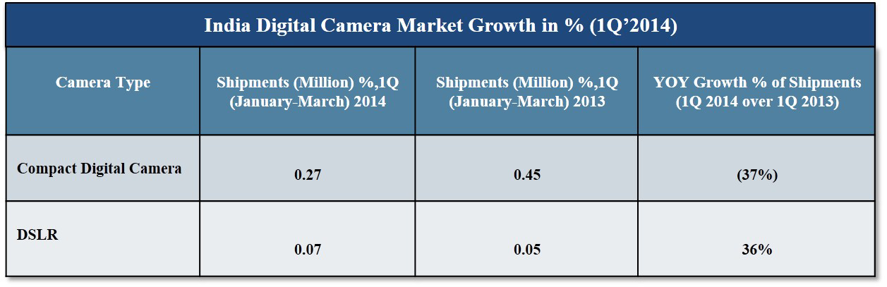 Although, overall India’s digital camera market has declined significantly due to shrinking demand for compact digital cameras. However, in terms of unit shipments, DSLR segment registered a substantial growth of 36%. Increasing purchasing power and rising demand for high end cameras have fueled the growth of DSLR cameras in India.