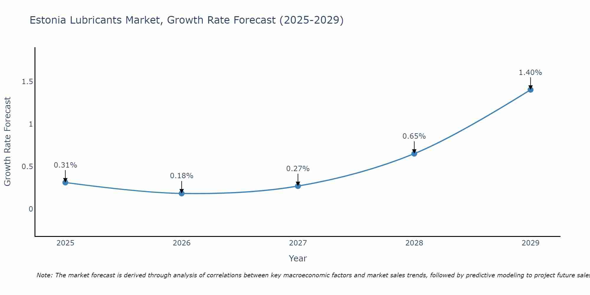 The Estonia Lubricants Market is projected to witness mixed growth rate patterns during 2025 to 2029. Commencing at 0.31% in 2025, growth builds up to 1.40% by 2029.